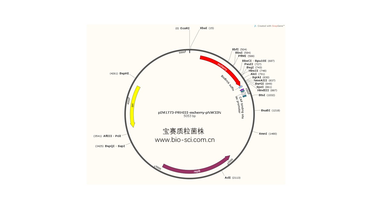 | 广宿主芽孢杆菌荧光质粒pIM1773-PRHIII-sfGFP-pNW33N,pub110 复制起点 |