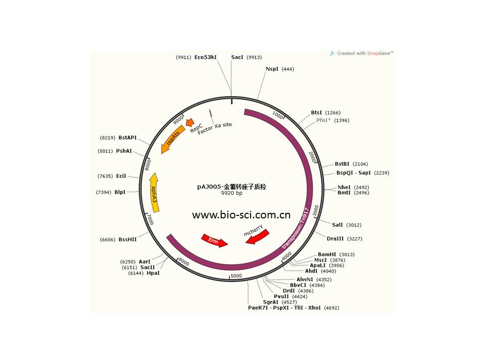 金黄色葡萄球菌转座子荧光载体pAJ005