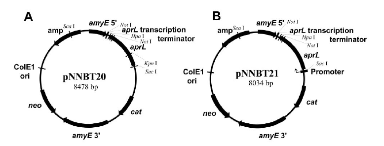 pNNBT20,pNNBT21 枯草芽孢杆菌整合型表达载体