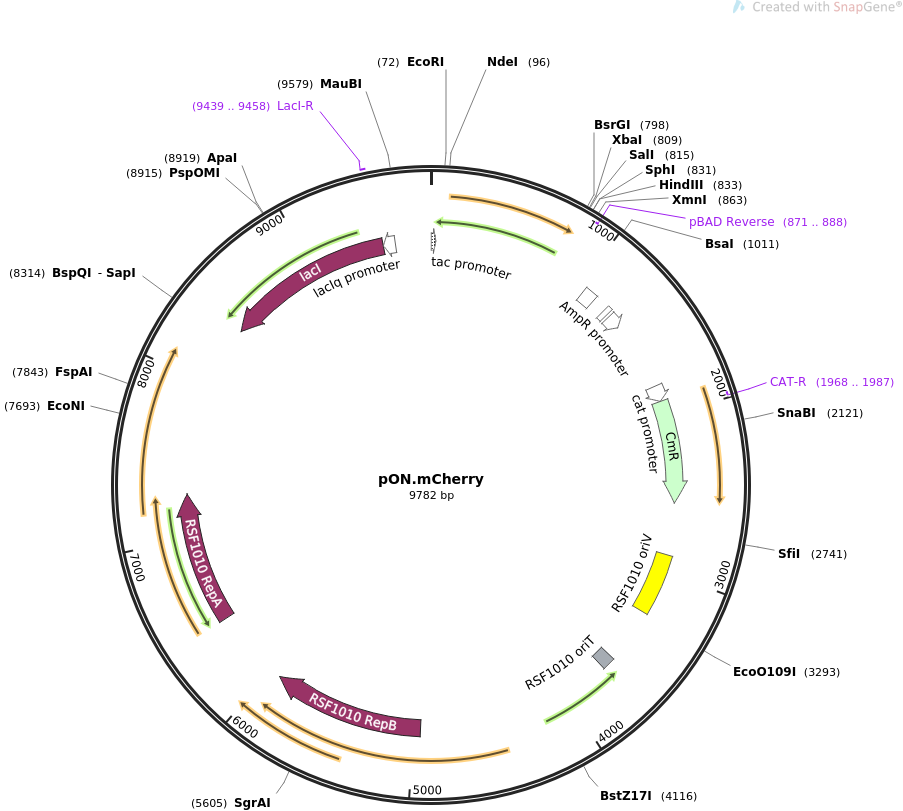 pOn-cherry 大肠杆菌荧光质粒,广宿主荧光质粒