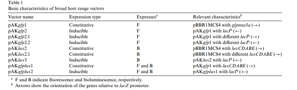细菌广宿主lux和GFP 双标荧光质粒pAKgfplux1