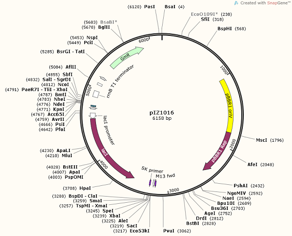 | 节杆菌载体pIZ1016, 也可用于鞘氨醇单胞菌 Sphingopyxis granuli. |