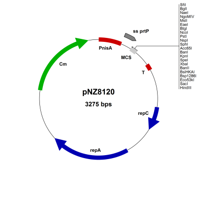| pO083 | 乳酸乳球菌分泌表达载体pNZ8120-lpp20 NZ3900(粘附因子信号肽,带外源基因片段) |