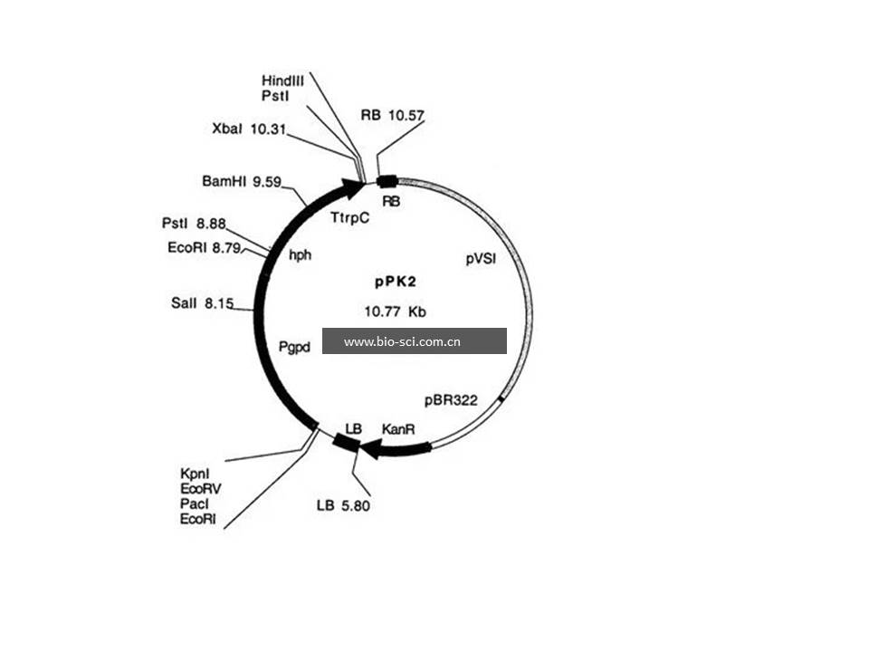 pPK2丝状真菌穿梭表达载体