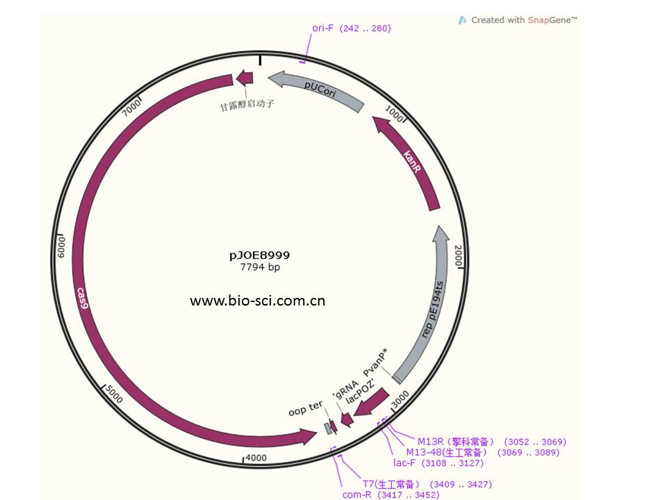 U0056 芽孢杆菌 CRISPR 敲除 质粒 pOJ8999