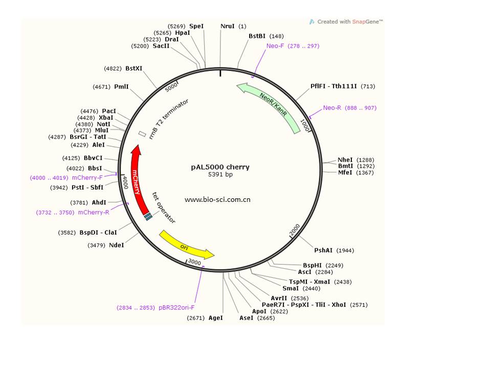 红球菌穿梭载体,四环素诱导表达cherry红色荧光蛋白