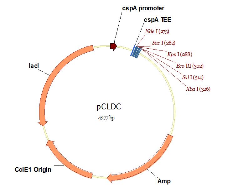 | 大肠杆菌低温启动子表达载体pCLDC,无需添加诱导剂 |