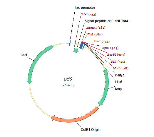 | 大肠杆菌分泌表达载体pES, lac启动子,TorA信号肽(E.coli) |