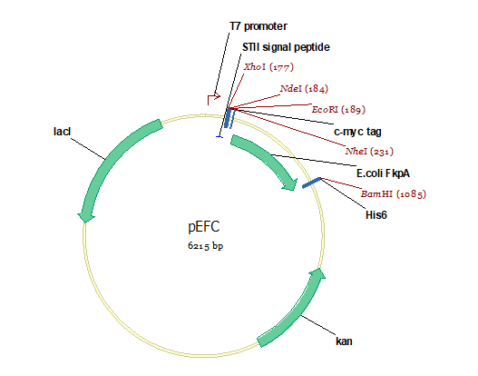 | 大肠杆菌分泌表达载体pEFC,T7启动子,肠毒素信号肽 |