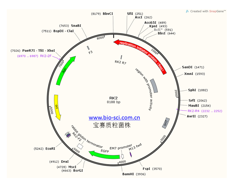 细菌广宿主质粒RK2(带绿色荧光蛋白)