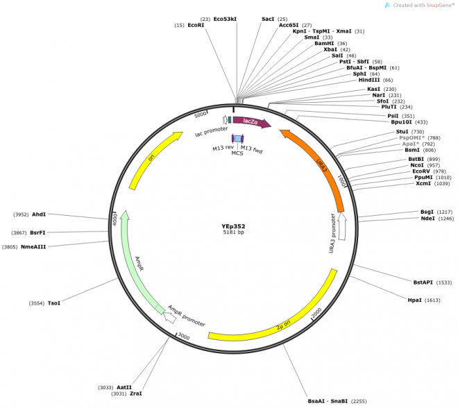 酿酒酵母整合型表达载体pYEp352