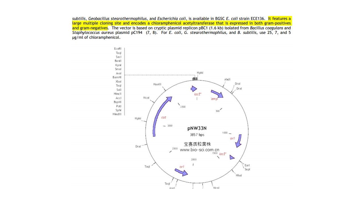 | pnw33n 枯草芽孢杆菌载体,pub110 复制起点,广泛用于芽孢杆菌,例如地衣芽孢,解淀粉芽孢,贝莱斯芽孢杆菌 |