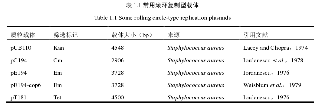 枯草芽孢杆菌 常用滚环载体,pC194,pT181, pE194