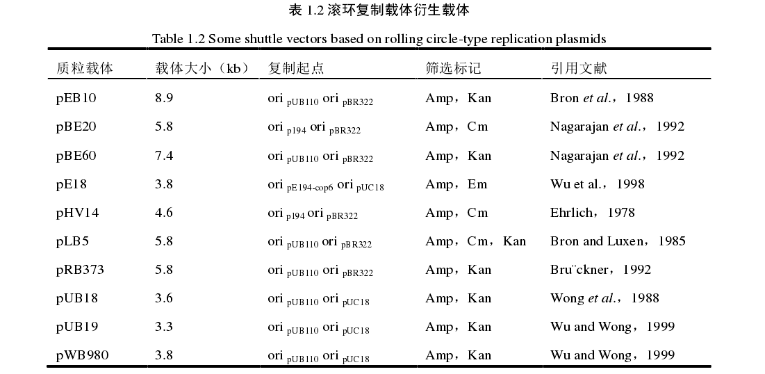 枯草芽孢杆菌 常用滚环载体衍生载体,pWB980等