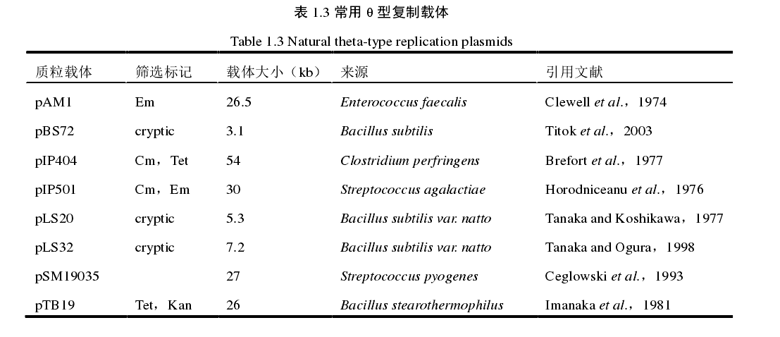 常用革兰氏阳性菌稳定性复制载体