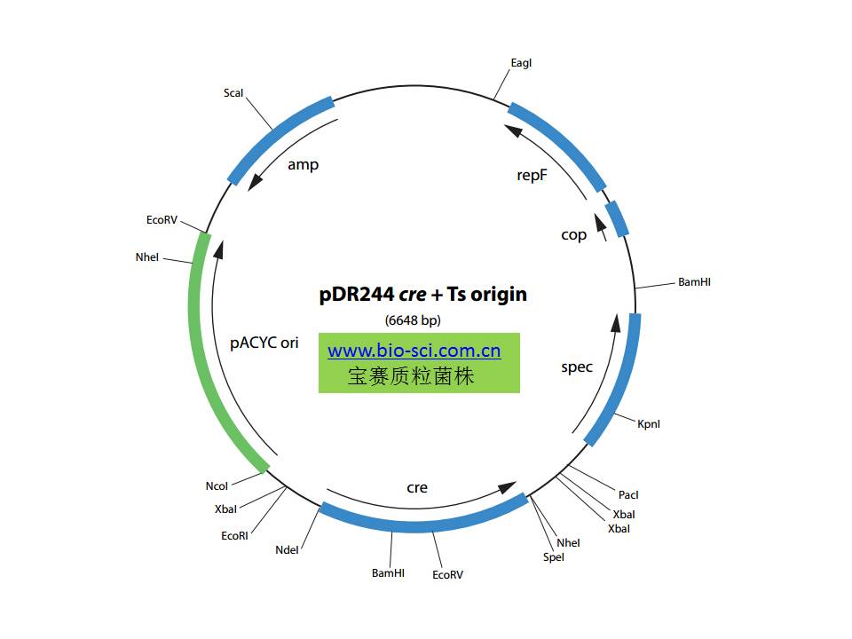 pDR244 Cre Ts枯草芽孢杆菌无痕敲除(cre-lox敲除)载体质粒