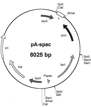pA-Spac,芽孢杆菌整合载体,lac启动子,IPTG诱导表达