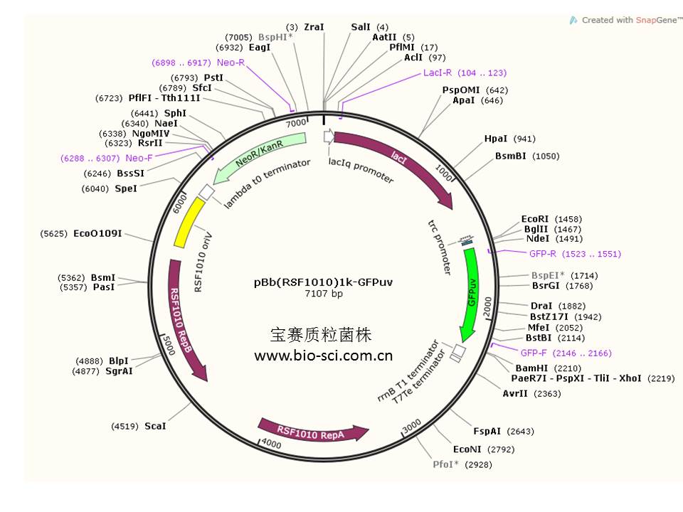 革兰氏阴性菌广宿主荧光质粒pBb(RSF1010)1k-GFPuv
