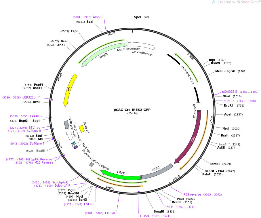 | 材料和方法部分: | pCAG-Cre-IRES2-GFP was a gift from Anjen Chenn (爱迪基因 plasmid # 26646) |