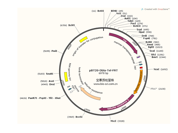 pBT20-Dbla-Tel-FRT 广宿主转座子质粒