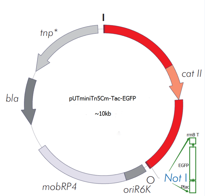 | pUTminiTn5-Tac-EGFP转座子荧光表达载体三亲接合系统广宿主型自杀质粒 |