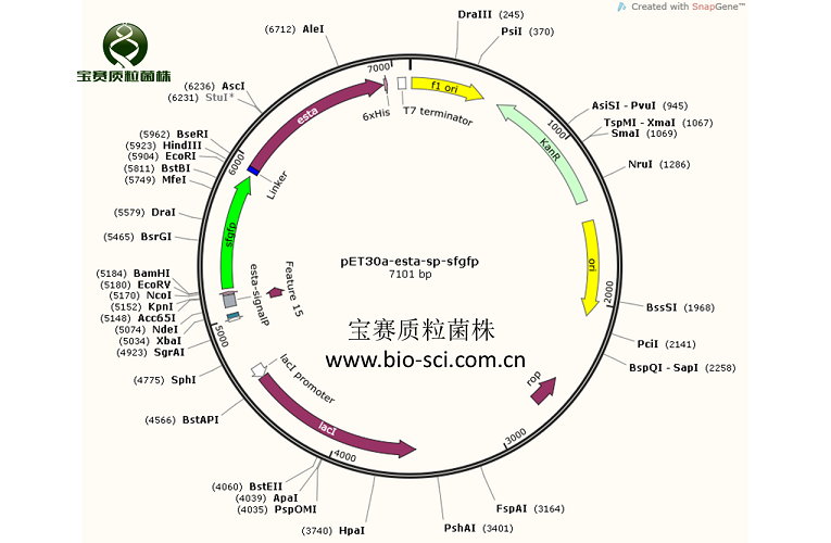 | 大肠杆菌表面展示载体,T7启动子,兼容BL21(DE3)宿主菌,estA铆定蛋白,融合带有sfgfp荧光蛋白 |