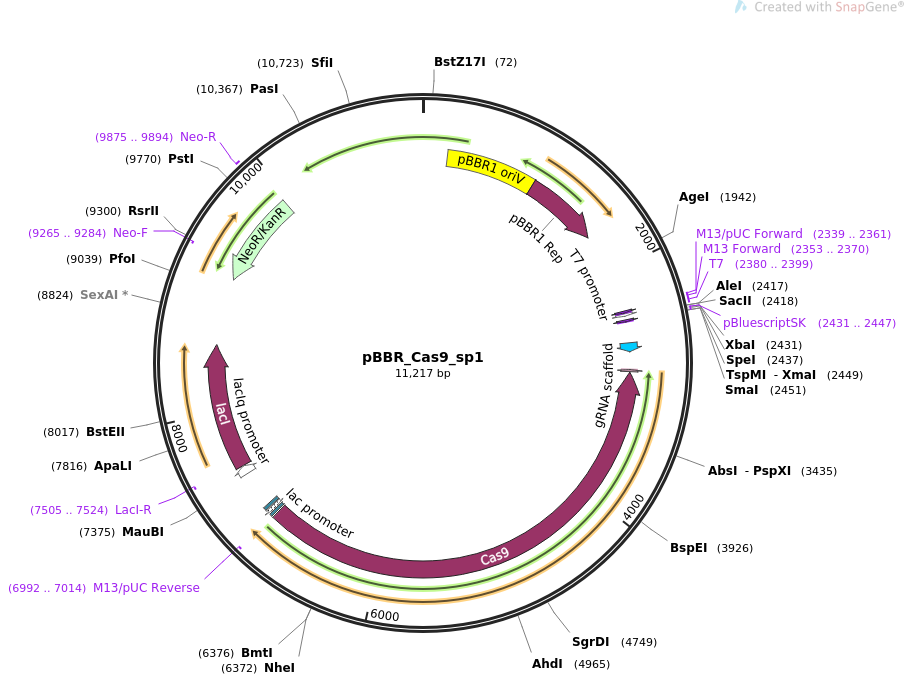 pBBR-cas9质粒,细菌广宿主CRISPR基因敲除质粒