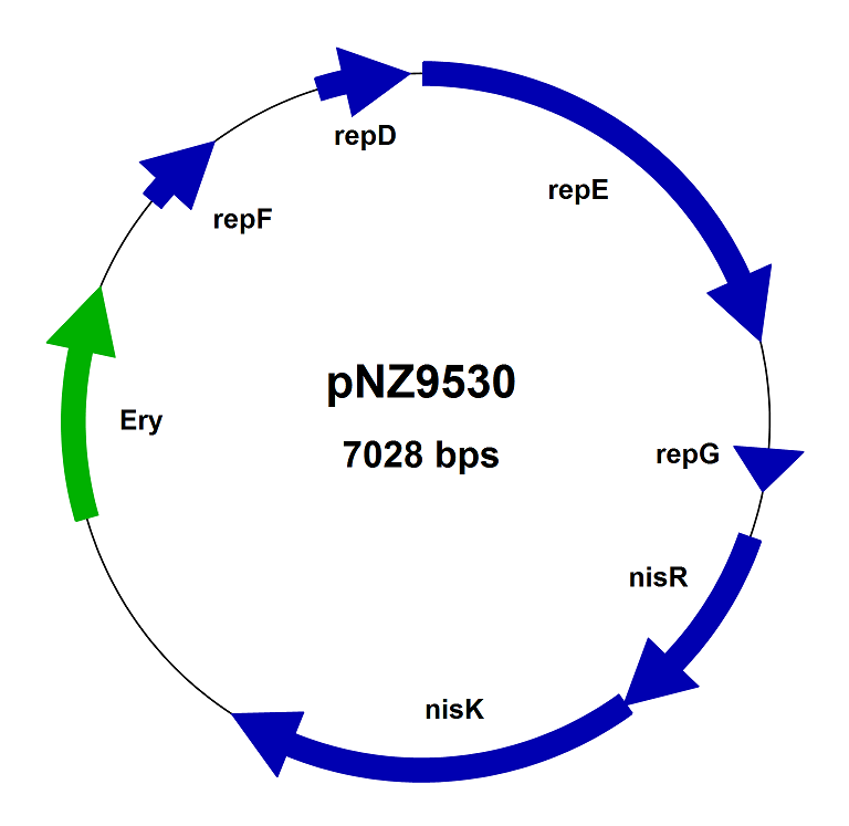 | 乳酸乳球菌载体pnz9530,nisRK genes under the control of the rep promoter of the low-copy |