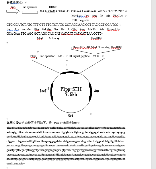 大肠杆菌分泌表达载体pLLP-STII