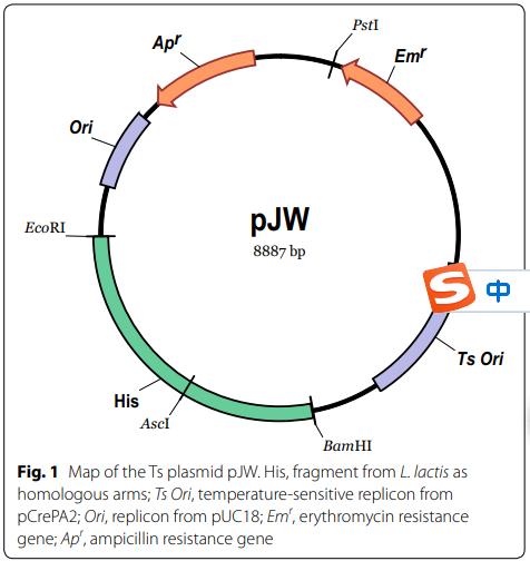 | pJW载体,乳酸乳球菌基因敲入载体 |