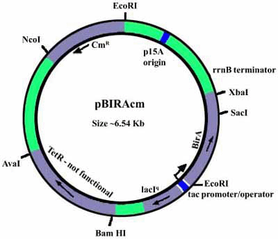 菌株AVB101菌株 AVB101,一种大肠杆菌 B 菌株(hsdR、lon11、sulA1),含有 pBirAcm,一种 IPTG 诱导型质粒,其中含有工程化到 pACYC184 中的 BirA 基因。它与大多数克隆载体兼容,并用氯霉素 (10 µg/ml) 维持。该菌株被推荐用于蛋白质表达,因为它生长旺盛且不存在 OmpT 和 Lon 蛋白酶。