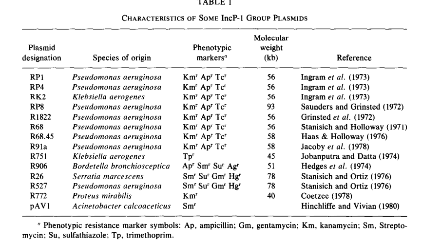 水平基因转移质粒 RP1,RP4,RP8,R751,R772