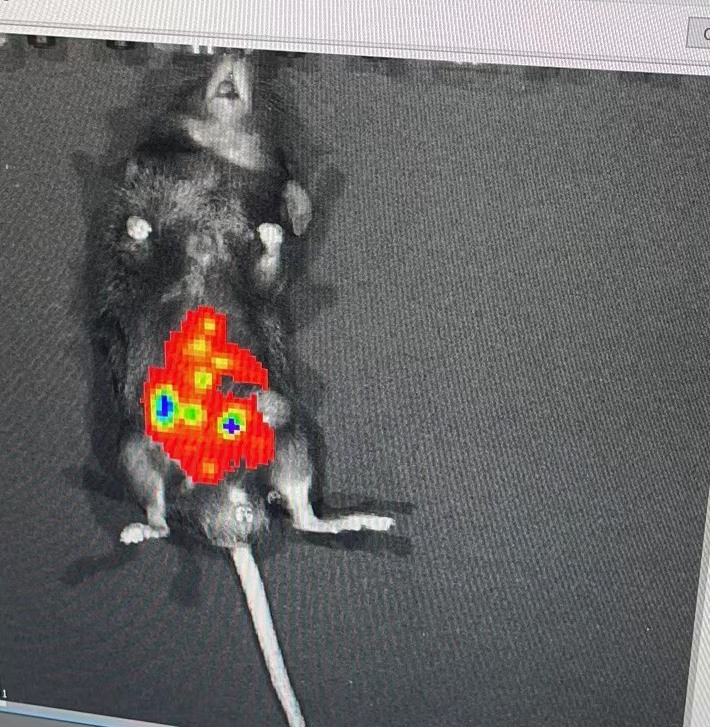 利用 lux细菌荧光素酶标记 金黄色葡萄球菌,感染小鼠模型,活体成像