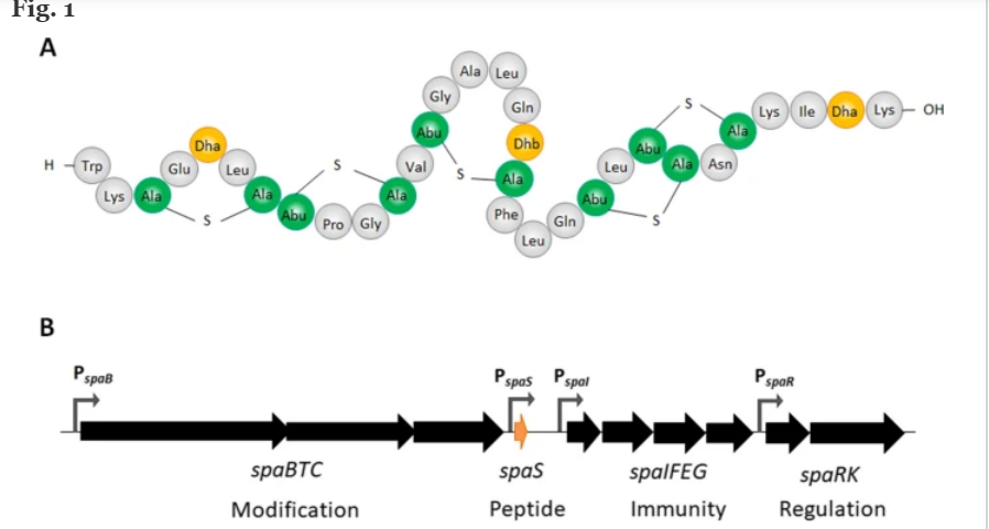 将Bacillus subtilis ATCC663中的 gene cluster spaBTCSIFEGRK (spa-locus)导入枯草芽孢杆菌168菌株中,再同时敲除AbrB基因,可以明显提高subtilin的产量。